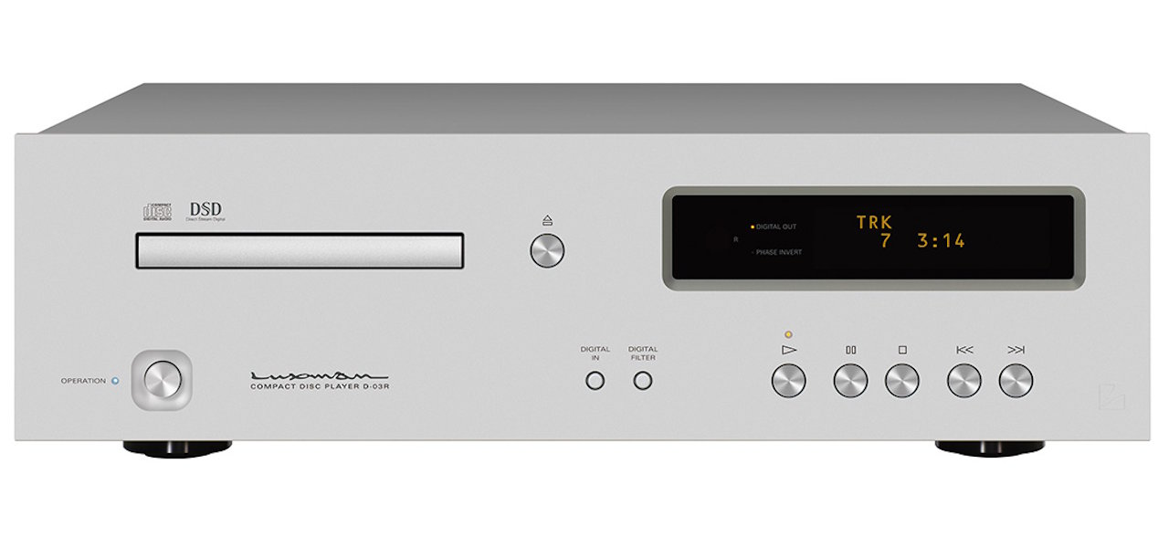 Alors que le D-03x utilisait encore une puce DAC Texas Instrument, le D-03R récupère les puces ROHM développées pour Luxman. Ceci permet à l’appareil de se positionner sur une musicalité haute de gamme plus proche de celles des plus grands D-07X et D-10X. En l’occurrence, il intègre même une version plus récente de puce BD34352EKV, utilisée en mono pour chaque canal et qui garantit une prise en charge des fichiers PCM jusqu’au 384 kHz/32 bits, du DoP et du DSD512 (à condition d’utiliser l’entrée USB). L’horloge à bruit de phase ultra-faible a été revue, le jitter étant également contrôlé par une transmission asynchrone dédiée pour le port USB, et par une horloge haute précision intégrée pour les ports coaxiaux et optiques.
